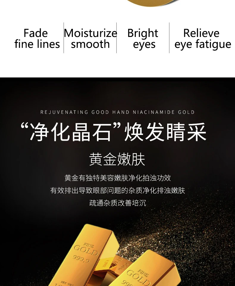 Золотые патчи на глаза: эффектно гладкие тонкие линии, ворсинки ног и мешки многих бессонных ночей. Сделайте вашу кожу восстановленной в увлажненной, пухлой коже молодости. Больше не устают и не спят. Отечность, морщины и темные круги, исчезнут.