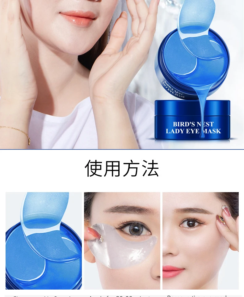 Esculent swift's nest Eye Patches: Гидрогелевая коллагеновая маска под глазами снимает отечность и уменьшает круги темных глаз. Мы используем только натуральные ингредиенты для их формирования, укрепляющие и увлажняющие маски под глазами.
