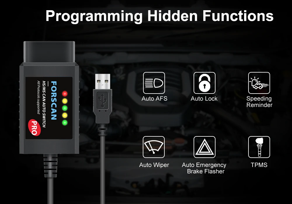 1. Работает с автомобилями ford 12V и грузовиками ford F серии 24V.2. Специальная конструкция с переключателем: подключение различных CAN автобусов, таких как MS CAN bus и HS CAN bus.3. Скрытые функции автомобилей Ford, Mazda, Lincoln и Mercury: напоминание о превышении скорости, один щелчок светильник неба, контроль давления в шинах, автоматический головной светильник s, автоматические щетки, аварийный стоп мигающий светильник и так далее.Таким образом, поддерживает конкретные особенности протоколов производителя, что делает FORScan более мощным в работе с этими моделями, чем любой обычный сканер OBD2.