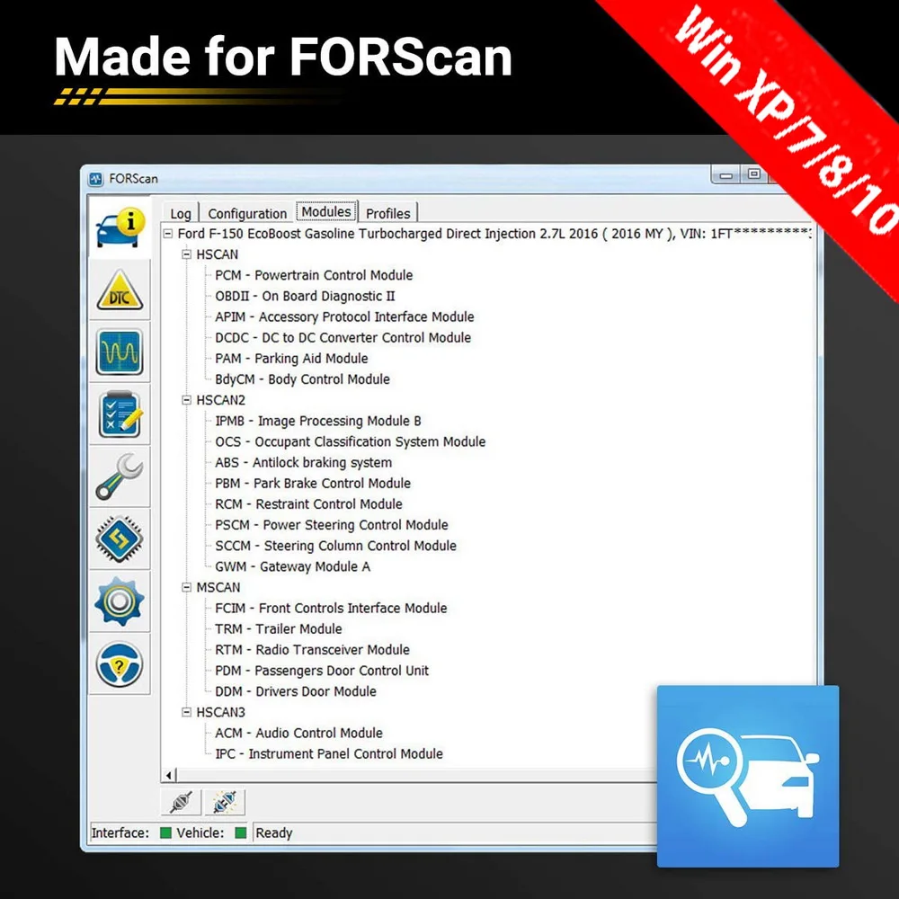 FORScan может обнаруживать модули, которые не видны для обычных сканеров OBD2, может показать вам коды неисправностей, которые никогда не отображаются сканерами OBD2, может показать вам PIDs, которые не поддерживаются любым сканером OBD2, выполните конкретные тесты и процедуры обслуживания.Другими словами, FORScan может делать то, что обычные OBD2 сканеры не могут сделать.