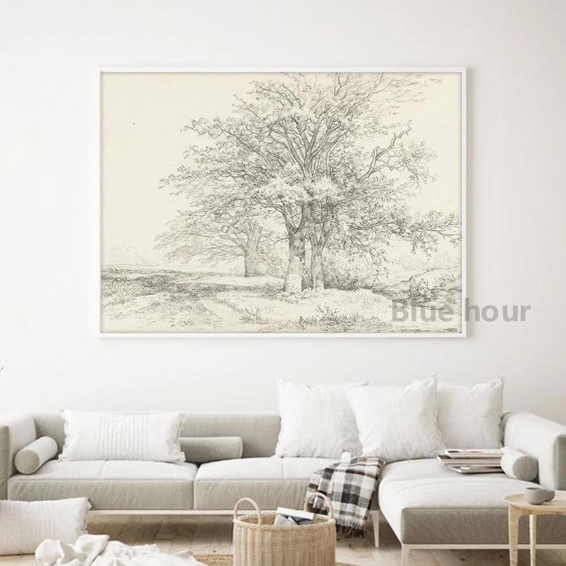 Tree Sketch Vintage Drawing Canvas Art Prints