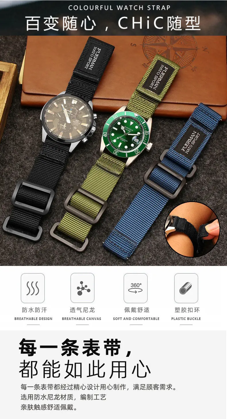 Ремешок нейлоновый для наручных часов S-eiko NO.5 007 series, спортивный браслет для наручных часов nato, 20 мм 22 мм 24 мм