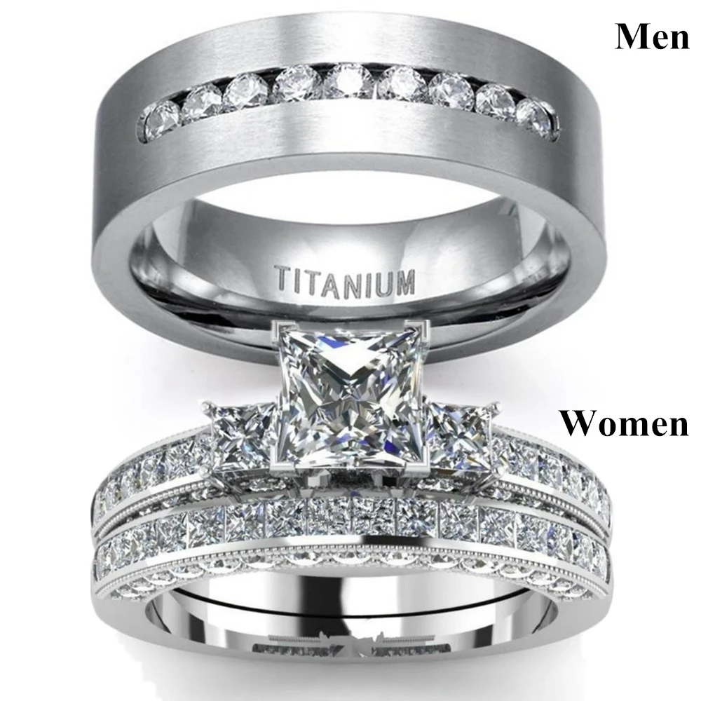 Набор колец из нержавеющей стали с фианитами для мужчин и женщин, обручальное кольцо с квадратной огранкой и кристаллами, кольца со стразами для пар, подходит для свадьбы