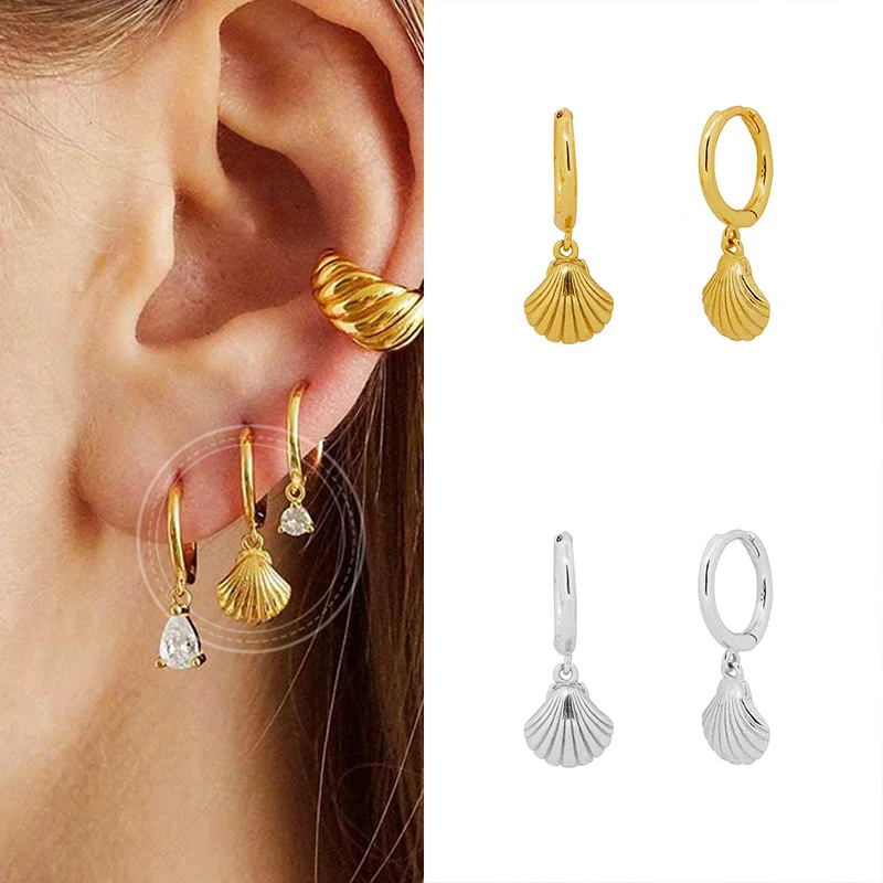 Серьги-кольца женские из серебра 925 пробы, с молнией и ракушками