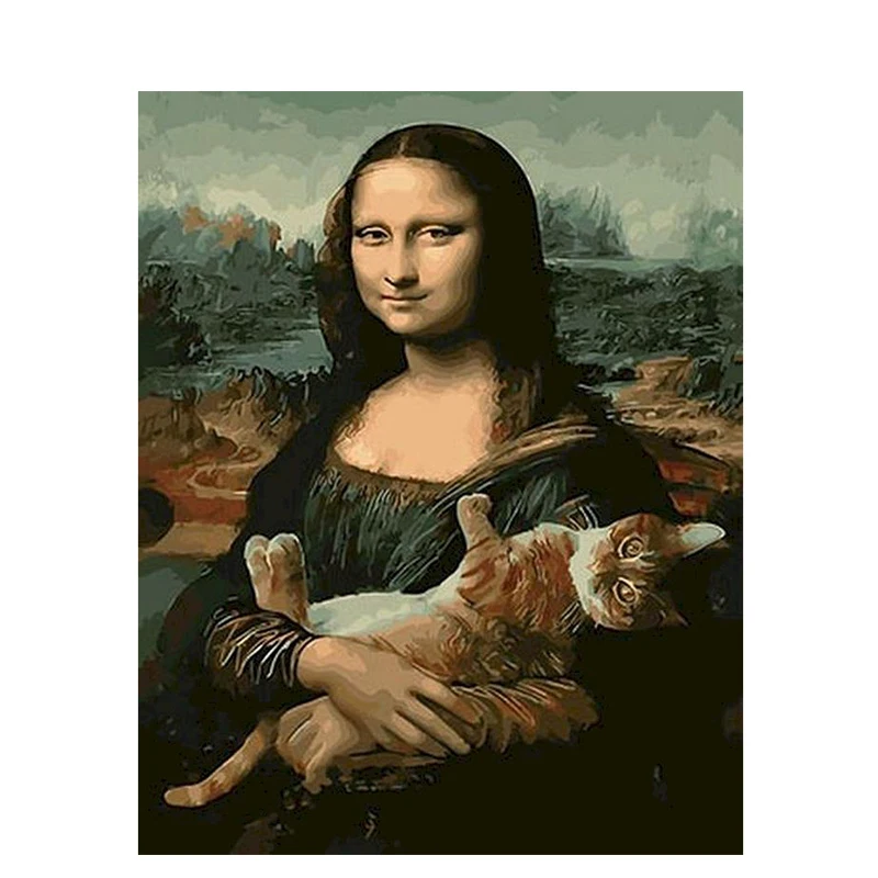 Набор масляных красок по номерам PhotoCustom, рисование по номерам Моны Лизы и кота, рама для холста 60x75 см, рисование сделай сам, домашний декор