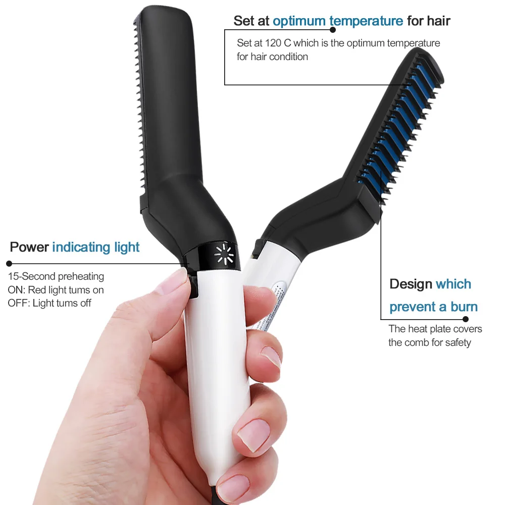 Функция: выпрямляет волосы, выпрямляет бороду, вьющиеся волосы, не повреждает волосы, длительная укладка