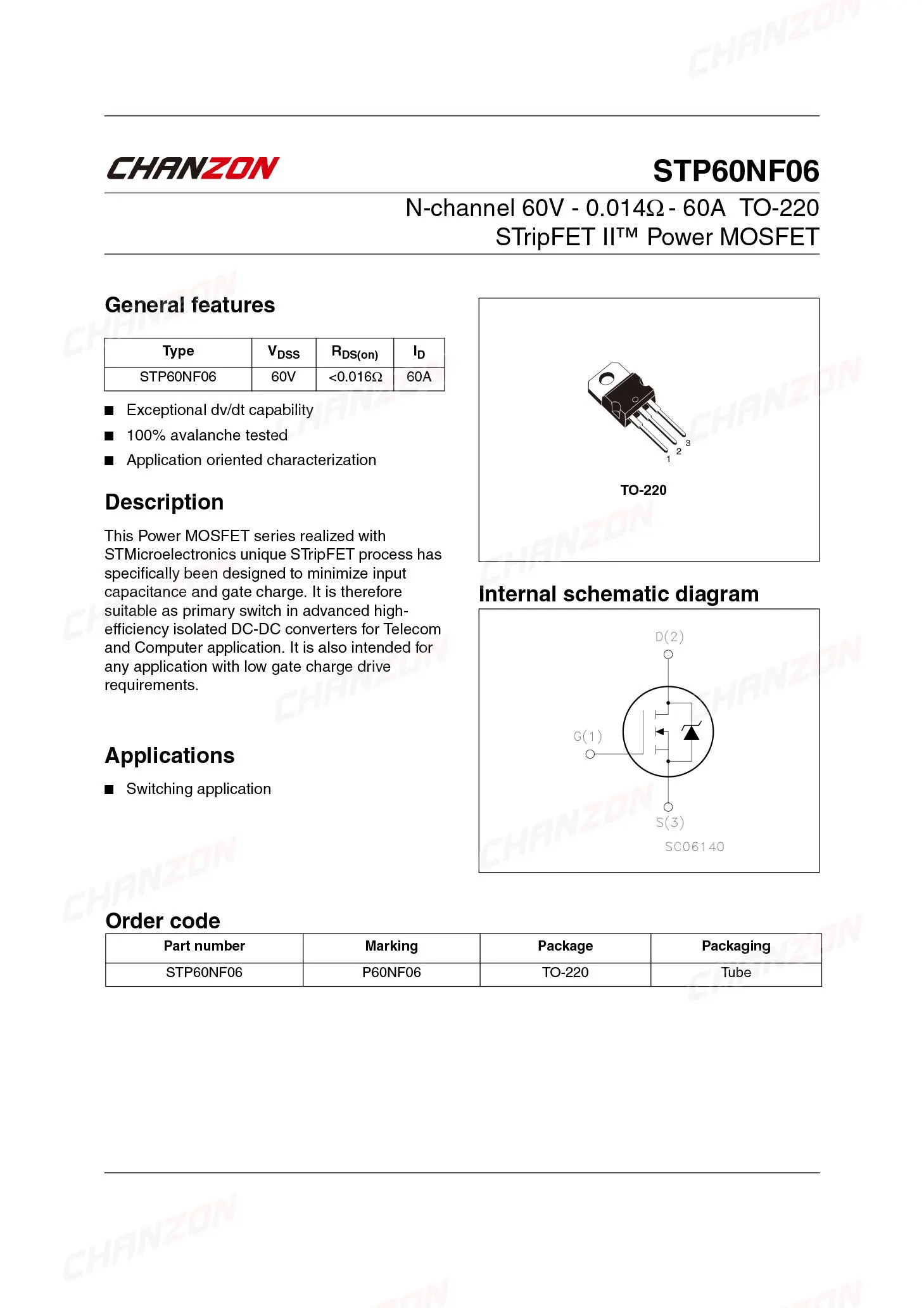 Номер моделиSTP 60NF06 TO 220 Replacements Manufacturers Lot Sale Price