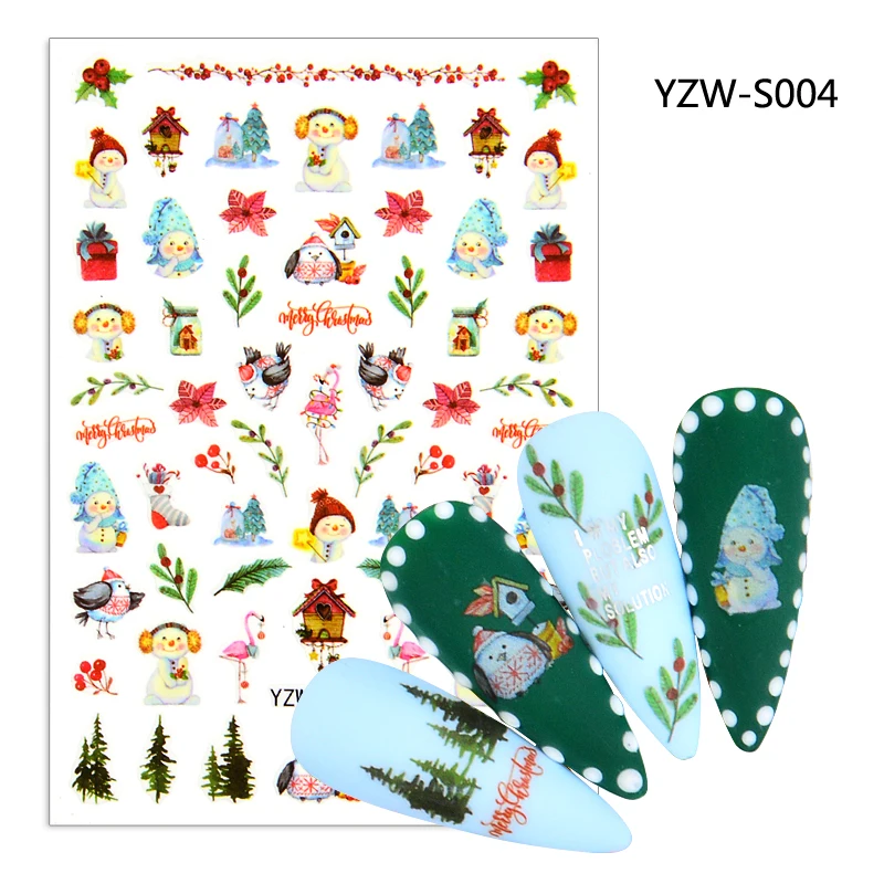 Новогодние слайдеры WUF, наклейки на ногти, Рождественские 3D снежинкиСанта-Клаусподарки, наклейки для ногтей, маникюр, зимние обертки