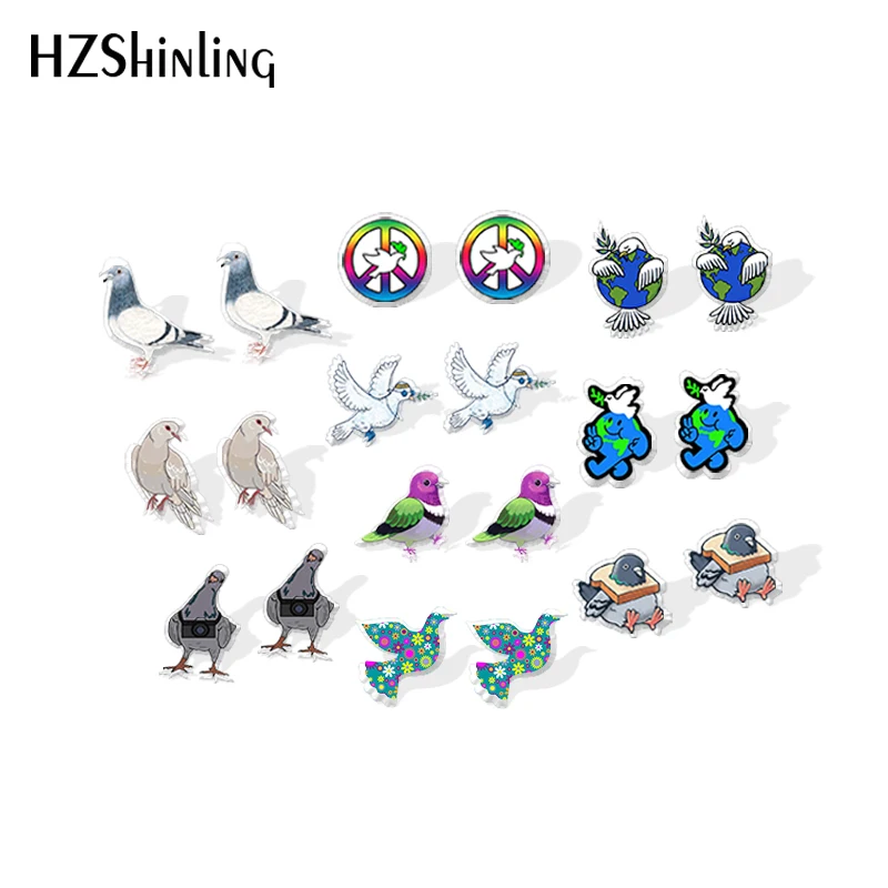 Новинка 2021, прекрасные серьги-гвоздики в виде голубей, искусственная эпоксидная смола, для девушек