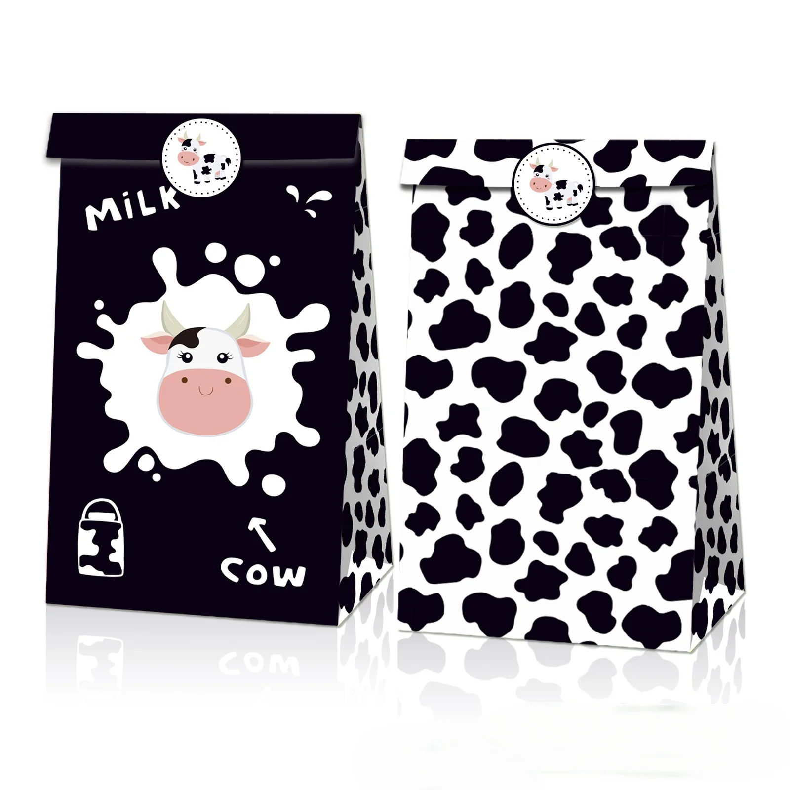 12 шт., сумка для вечеринки в честь Дня Рождения, сумка из коровьей кожи, подарочные сумки для фермерских вечеринок, сумки из коровьей бумаги, черные, белые бумажные пакеты