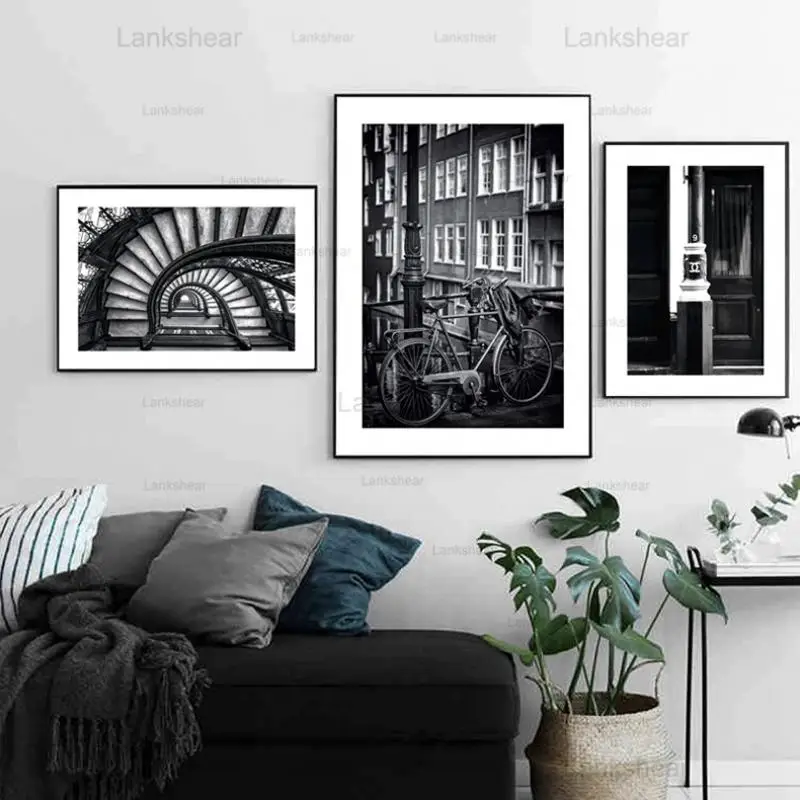 Художественный постер с черно-белыми принтами, настенный минималист...