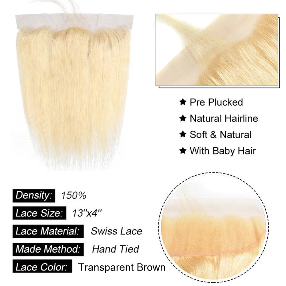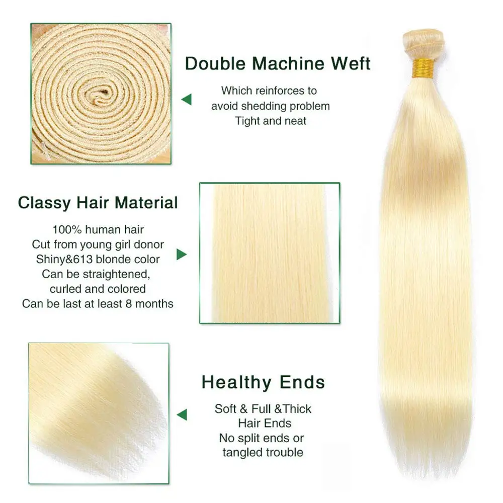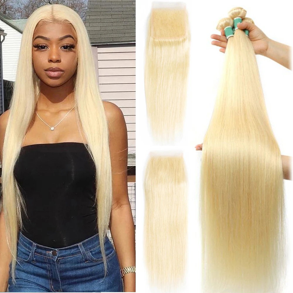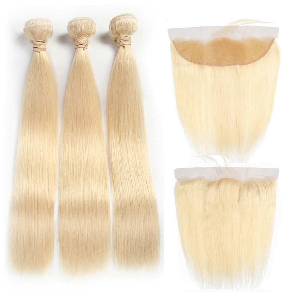 613 прядей с фронтальной застежкой блонд человеческие волосы пряди с фронтальной застежкой 30 дюймов прямые волосы 3 пряди с фронтальной