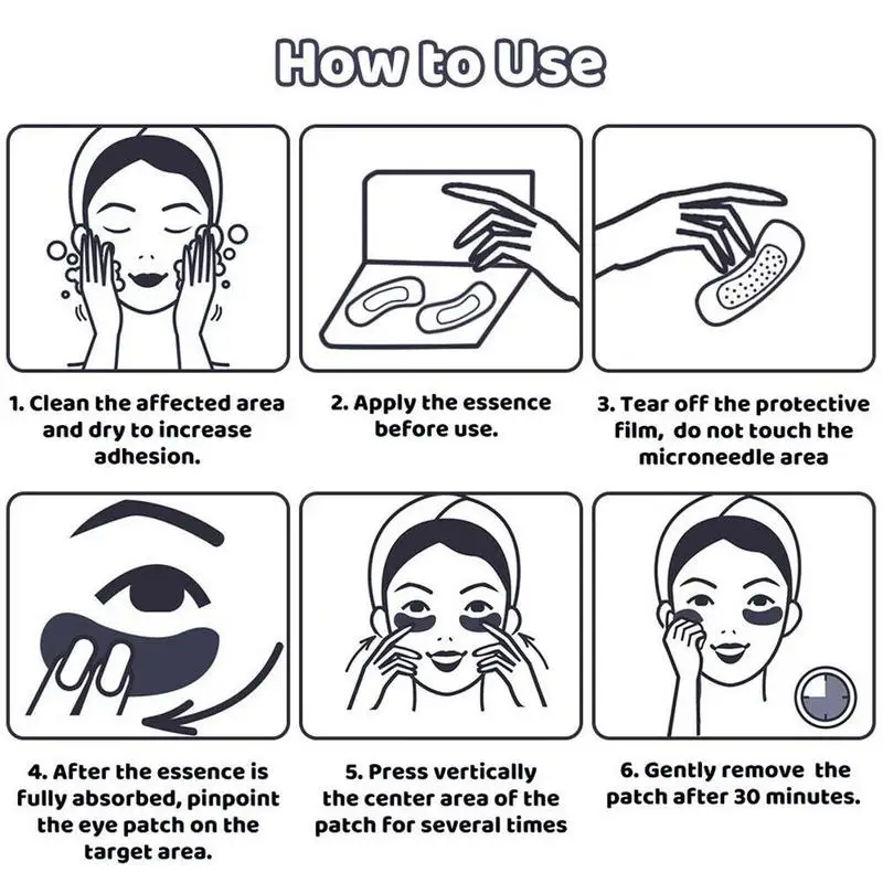 Патч для глаз, с гиалуроновой кислотой, с микроиглами, отбеливающая маска для тёмных линий, удаление морщин, кругов, увлажнение кожи вокруг глаз, R2U5