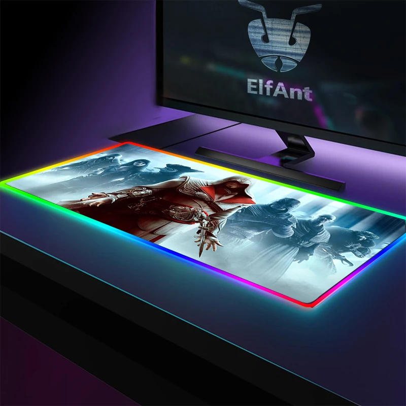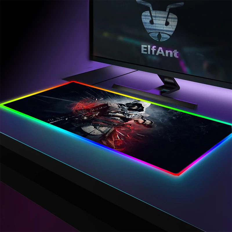 Коврик для мыши светодиодный с аниме Assassins Creed, коврик для мыши Rgb с украшением комнаты, игровой компьютерный коврик для мыши с кабелем
