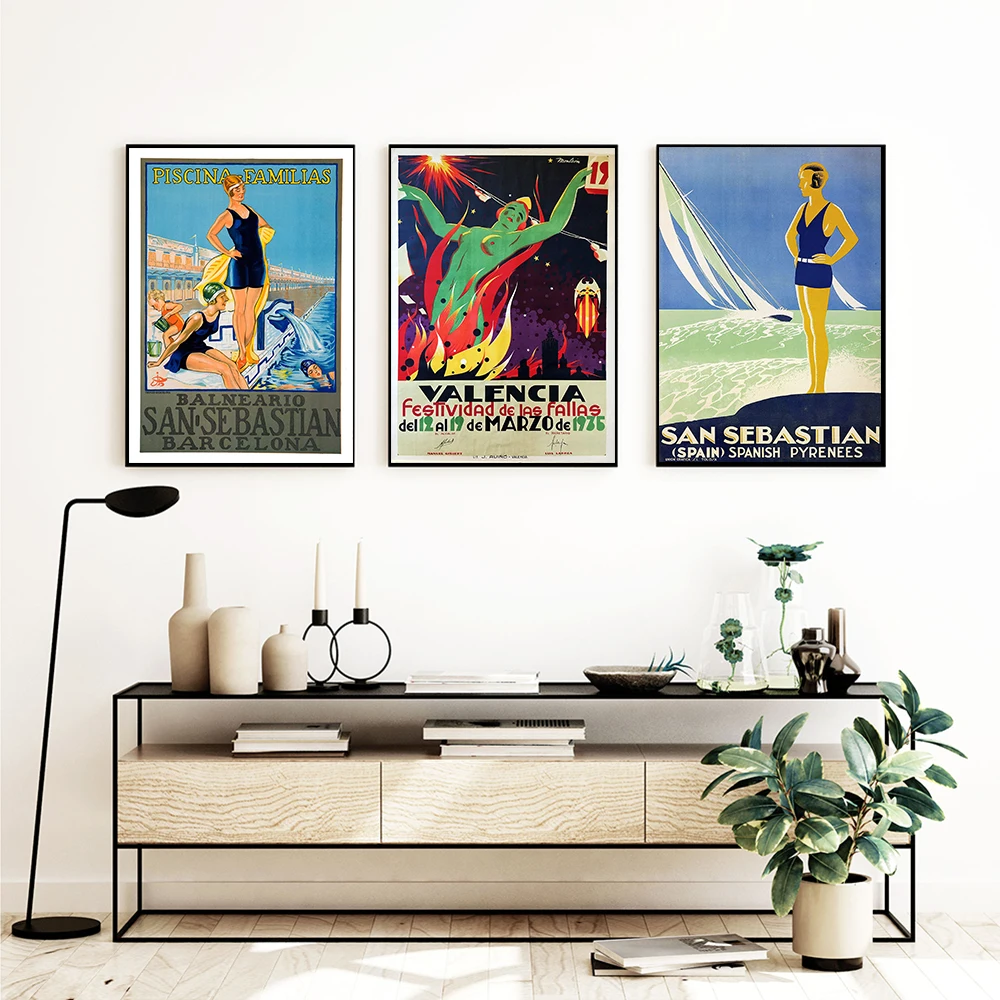 Плакаты Испании, Барселоны, Сан-Себастьян, Валенсия, осень, винтажные дорожные картины на холсте, современный подарок, Декор для дома и комнаты