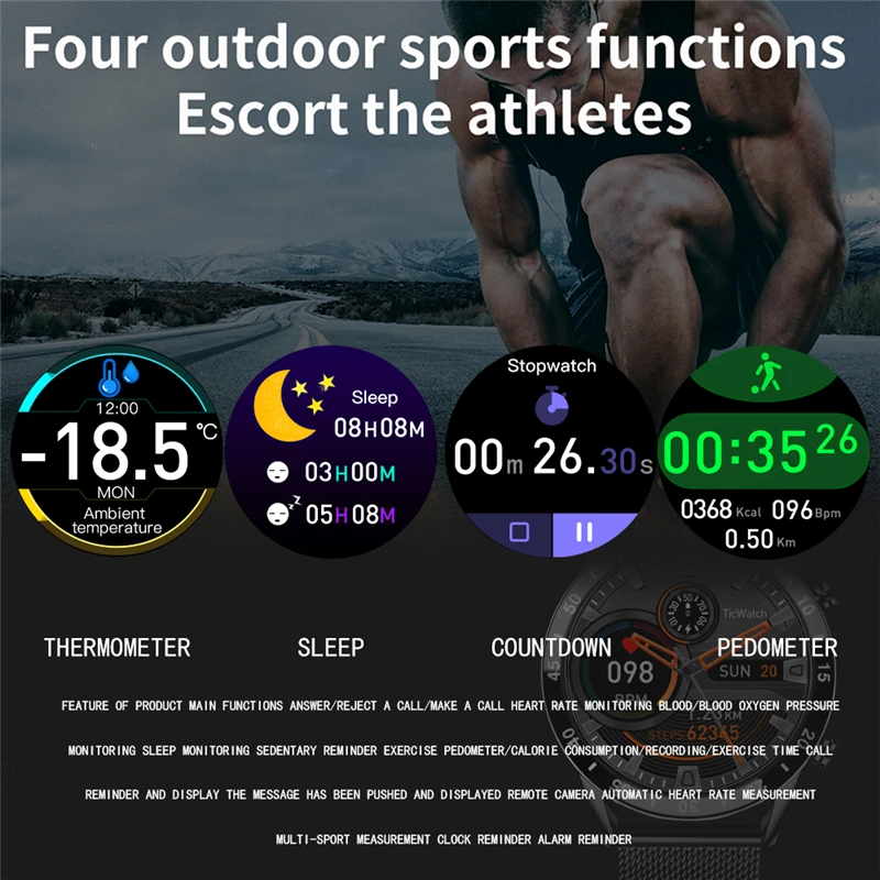 Прием/Отклонение телефонных звонков/набор телефонных звонков, мониторинг сердечного ритма, Мониторинг Артериального давления/кислорода, мониторинг сна, напоминание о малоподвижности, шагомер с портами/расход калорий/запись отслеживания/время тренировок, напоминание о звонках и дисплее, отображение сообщений, камера с дистанционным управлением, автоматическое измерение пульса, мульти-спорт, измерение, напоминание о часах, напоминание о будильнике, 5 видов циферблатов по умолчанию. Циферблаты настраиваемых приложений необязательны.