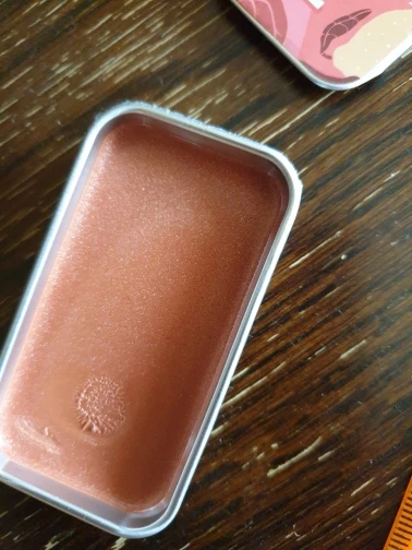 В подарок продавец положил резинку для волос, очень приятно) Мне оттенок очень понравился - нежный персиковый цвет, очень красивый в живую, фотографиями очень сложно передать реальную его фактуру. Палитра пришла в небольшой металлической коробочке, упакованной в слюду, срок годности до 24 года на банке указан.Баночка маленькая, объём 10 грамм, но расход очень минимальный, поэтому хвалит на долго. Палитру можно использовать как тени для век, помаду для губ и румяна. Текстура нежная, легко наносится и растушёвывается. Мне больше всего палитра подошла как румяна. Как тени - не очень, мне трудно подобрать тени на мою жирную кожу, к концу дня очень часто тени сворачиваются на веках. Как помада на губах смотрится красиво, но у меня сухая кожа на губах, поэтому лучше всего подходят жидкие помады. А вот как румяна - это просто восторг!