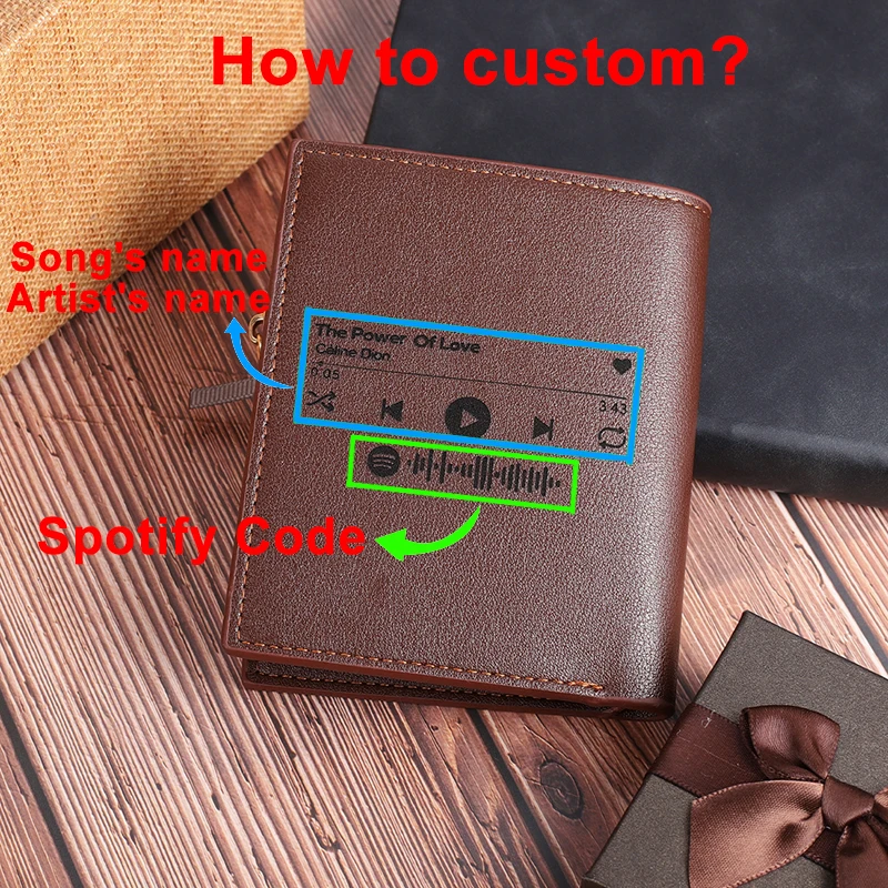 Пользовательские фото бумажник-выберите крышку или изображение, которое вы хотите бумажник, введите фото, имя музыки, имя художника. Код песни spotify автоматически генерируется в соответствии с музыкой, которую вы предоставляете.Идеальный подарок: с персонализированным кошельком, Это полезный подарок для вашего сына от мамы. Это отличная идея для подарка на день рождения, выпускной или Рождество, любой особый случай, который вы хотите.Структура и размер: 4,72 "Длина х 3,77" в ширину. С 4 слотами для карт и еще 2 слотами позади них, есть достаточно места для всех ваших важных карт и счетов.Кожа высокого качества: с использованием кожи высшего качества, наш кошелек имеет эффект винтажа и не потеряет свой внешний вид с течением времени. Кожаный бумажник с прочной и мягкой поверхностью дарит вам идеальное прикосновение и ощущение.