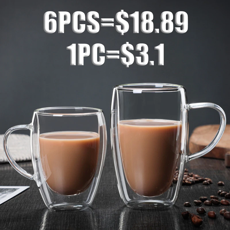 Прозрачная Термоизолирующая чашка из двойного стекла, 6 шт.