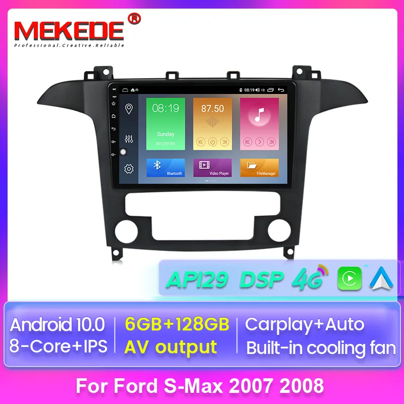 Автомобильный DVD-плеер 2DIN, 6 + 128G, Android 10, RDS, IPS, DSP, 4G, Lte, для Ford S-MAX S MAX 1 2007-2008, радио, GPS-навигация, Wi-Fi, мультимедиа