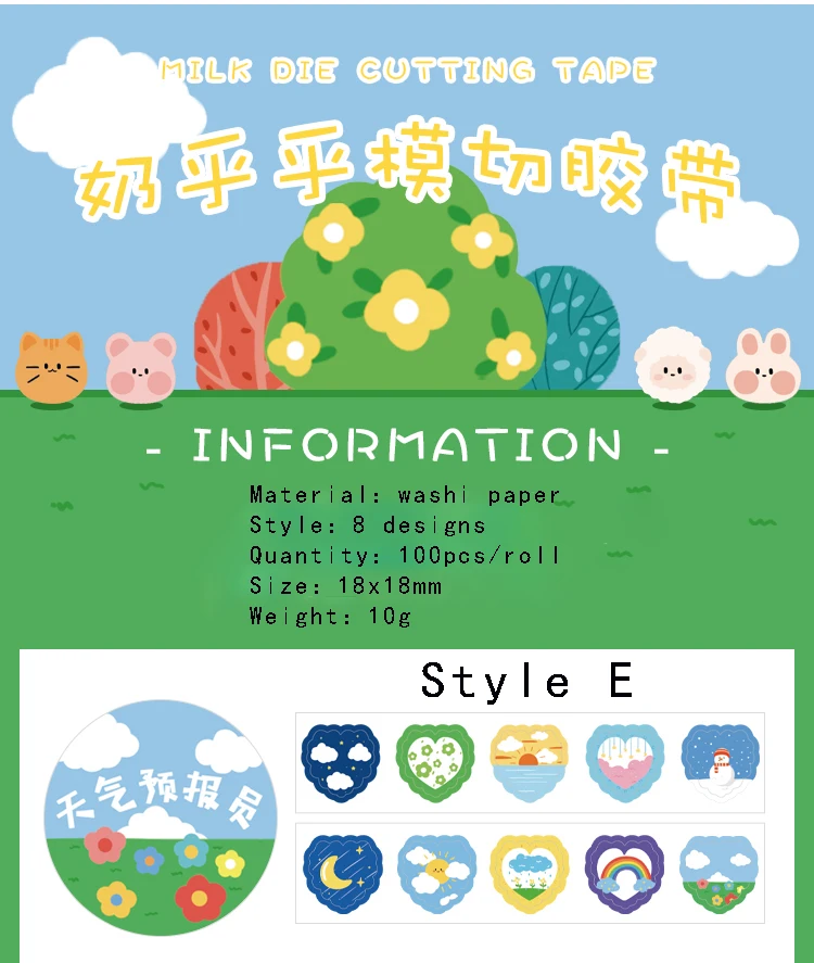 Mr.Paper 8 видов конструкций, 100 шт.рулон, мультяшная серия Млечный, креативный милый одиночный лента декоративная Васи, материал сделай сам