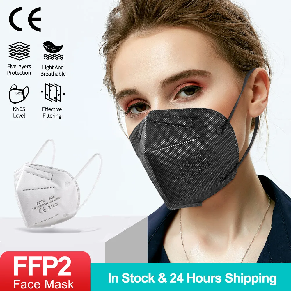 5 слоев FFP2 маска для взрослых Black KN95 Mascarillas FPP2 одобрен...