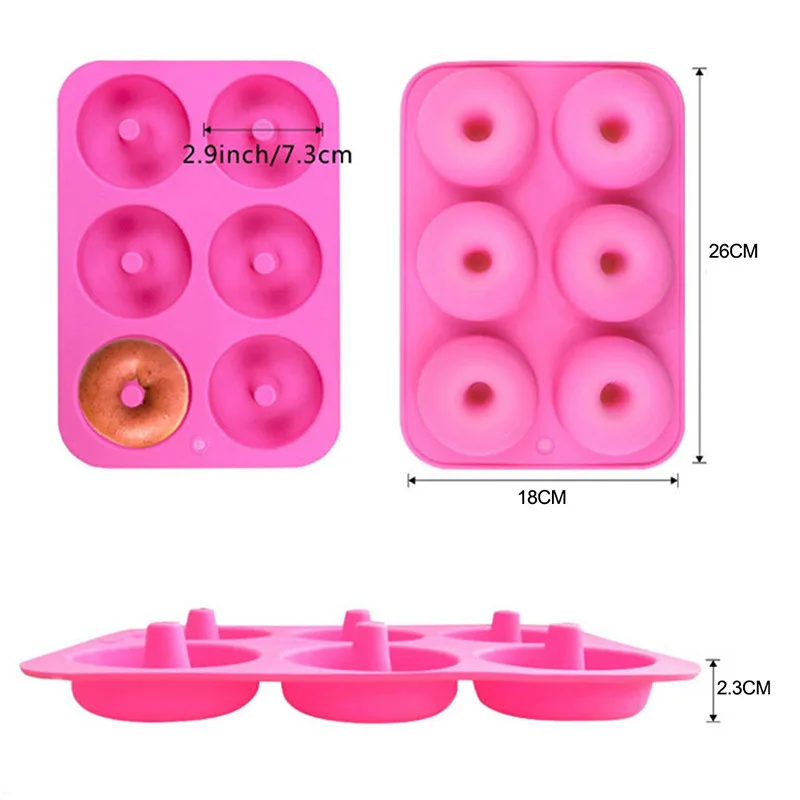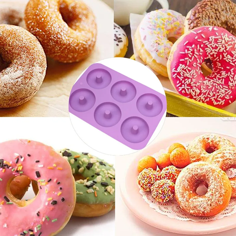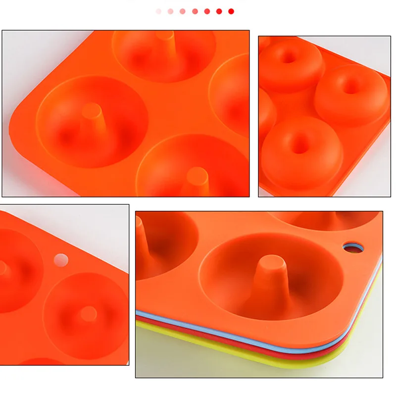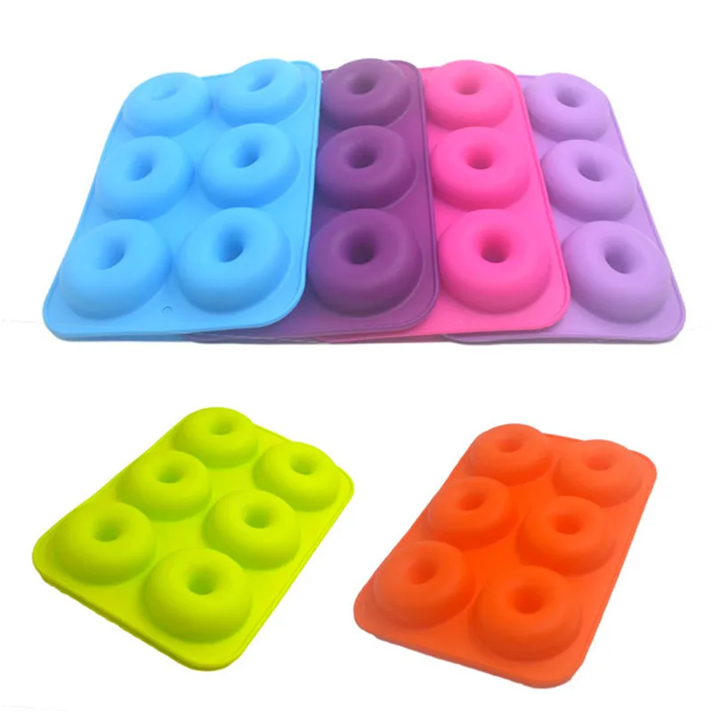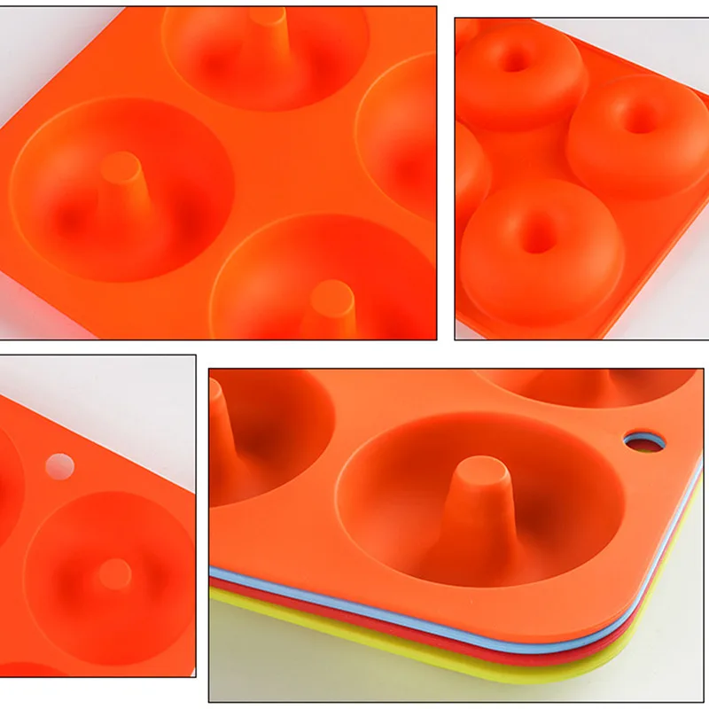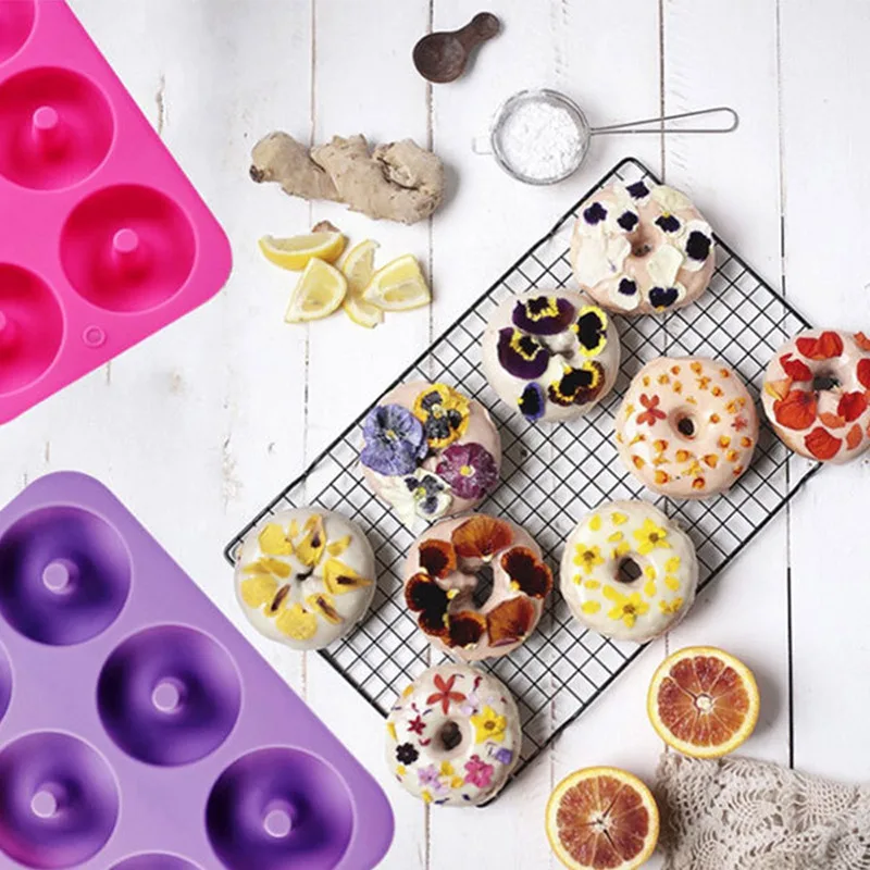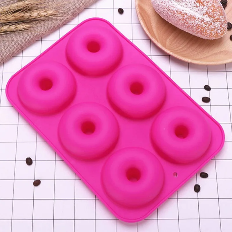 Силиконовая форма для пончиков, многоразовая форма для выпечки с 6 отверстиями, антипригарное покрытие, форма для клубничного торта, для конфет, пончиков, выпечки