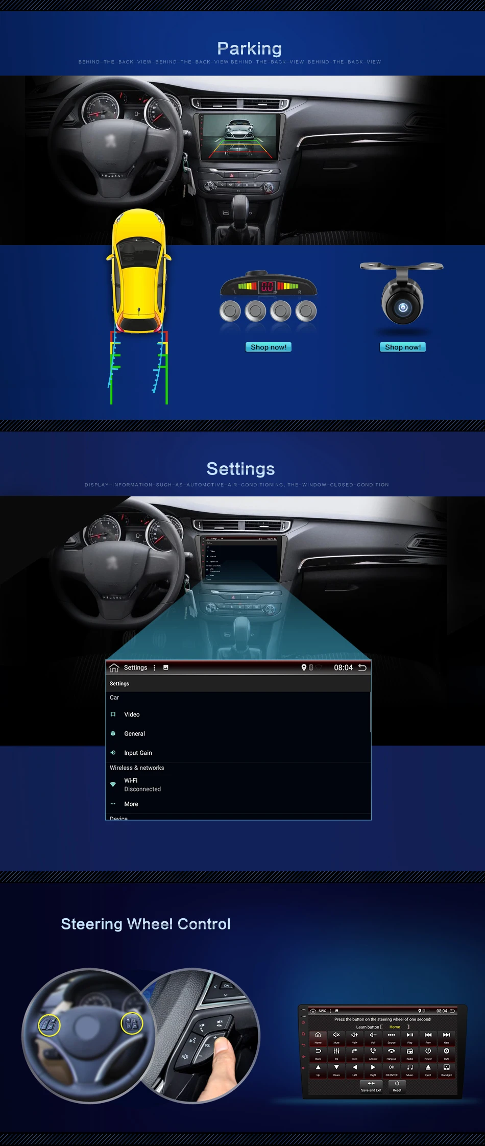 1:Bluetooth бесплатно. Поиск телефонной книги по Bluetooth от "A до Z" 2:HD емкостный сенсорный экран: 1024*600 3: камера заднего вида/запись привода DVR от заднего USB: Поддержка 4:OBD, зеркальная ссылка: поддержка (требуется дополнительная оплата) 5: холодный запуск около 20-35 секунд 6: зеркало, управление рулем: Поддержка 7:Wi-Fi: Встроенный/через телефон в качестве Wi-Fi горячей точки. 8: поддержка приложений: многие, например: Google Play Store, Skype, Facebook, YouTube, Twitter и т. Д. 9: Поддержка RDS.FM частота: 87,5-108MH AM частота: 522-1710 кГц 10: Автомобильный Интернет: встроенный wifi, suport 3G/4G/современный (требуется дополнительная оплата) 11: Поддержка GPS онлайн-карты, такие как Google Yandex.SYGIC,IGO,TOMTOM/ Waze.Yandex карта должна связаться с нами для установки 12: мульти OSD язык s: английский/русский/французский/немецкий/испанский/итальянский/арабский/Португальский/Турецкий/тайский/Польский/иврит и т. д. 60 видов языка 13: Рабочая температура: -20 °C ----- + 70 °C Температура хранения: -30 °C ----- + 80 °C 14: Логотип Ботинка: Выберите Встроенный 50 видов Автомобильного Логотипа. Выберите логотип автомобиля, который вам нравится. 15:RCA кабели для сабвуфера, кабель питания plug and play, легко установить 16: Новые ОС Android, Google Play Store, Skype, Facebook, YouTube, Twitter и т. Д.17. Гарантия: 1 год"