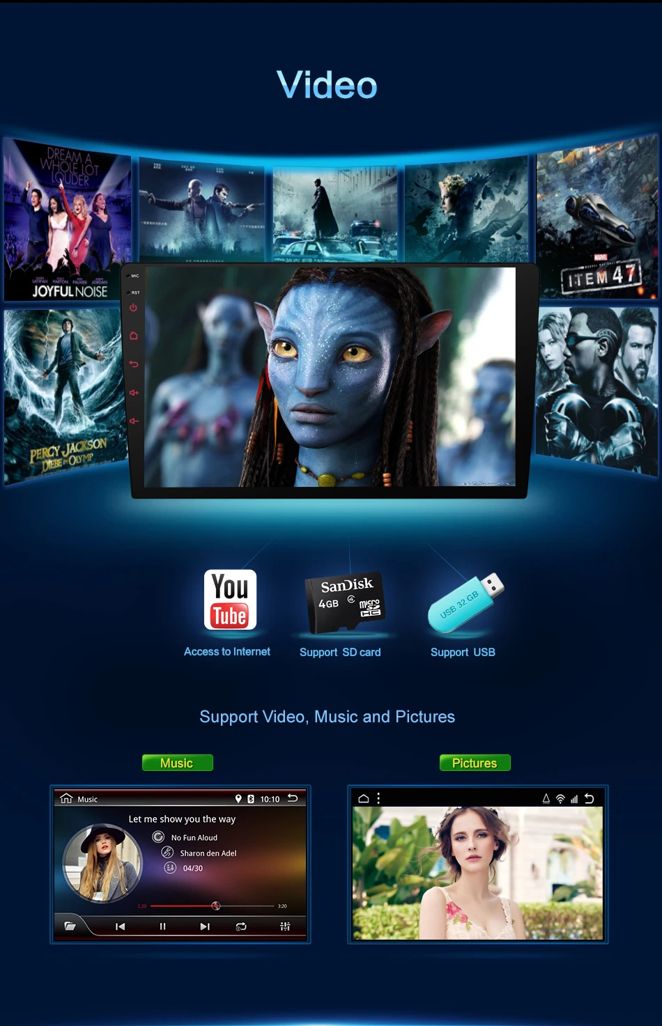 Сенсорный экран + радио + FM/AM + RDS + gps-навигация + карта + Wifi + Bluetooth + управление рулевым колесом + сплит-экран + USB + SD + AUX вход/выход + зеркальная ссылка + задний камера + сабвуфер + Play Sore + EQ + набор обоев + логотип автомобиля + 3G/4G + TPMS + DAB + OBD 2 + DVR + TV