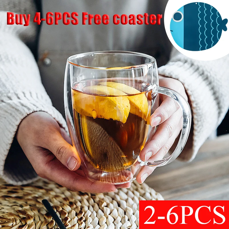 Термостойкая прозрачная чашка из боросиликатного стекла, 2-6 шт.