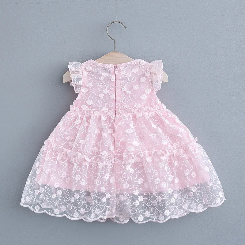 Детское платье для крещения на 1 год, модная одежда, кружевной комбинезон с оборками и цветочным принтом для новорожденных, платья принцессы