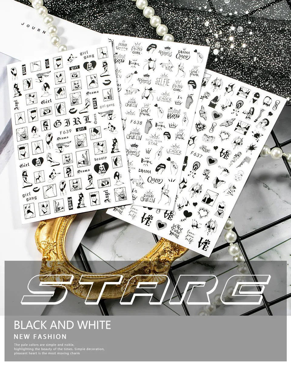 3D наклейки для ногтей цветок лист Бабочка панда любовь сердце Карт...