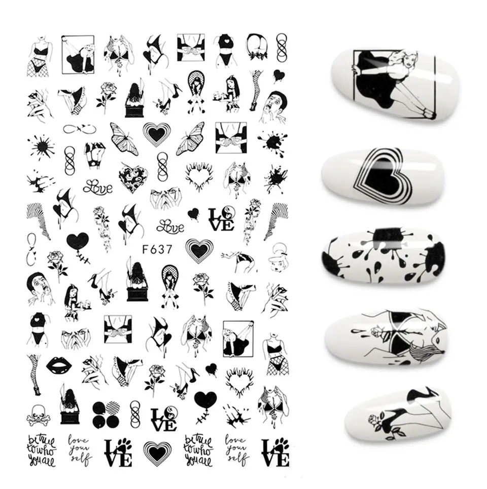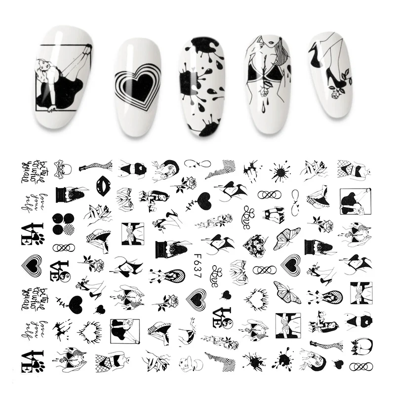 1 шт. наклейки для ногтей цветок лист Бабочка панда любовь сердце К...