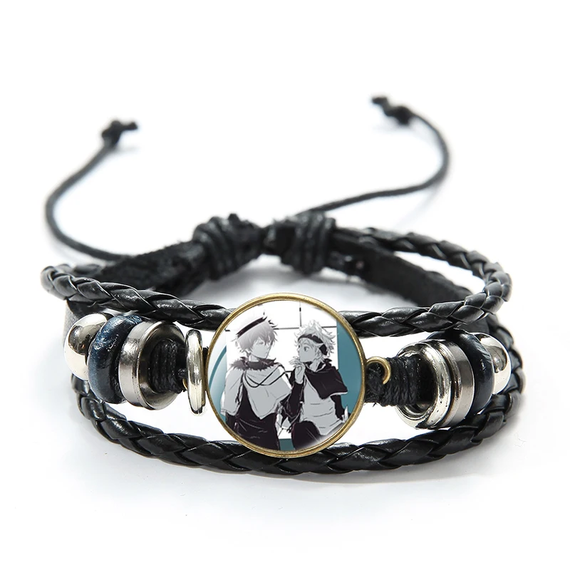 Японский кожаный браслет с черным клевером из аниме Asta Yuno Noell...