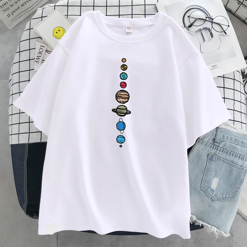 Цвет планеты творчество милый принт футболка женские удобные мягкие футболки летняя брендовая одежда хип-хоп повседневная женская футболка