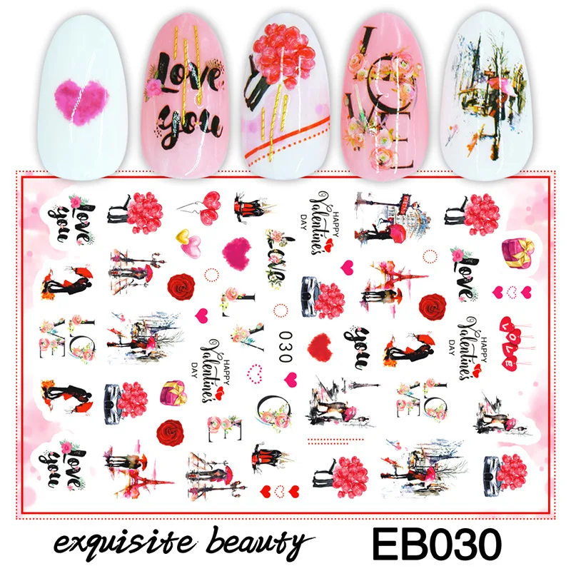 Наклейки для ногтей Morixi, на День Св. Валентина, с сердцем, цветами, сердцем, поцелуями, самоклеящиеся наклейки для ногтей, JM002
