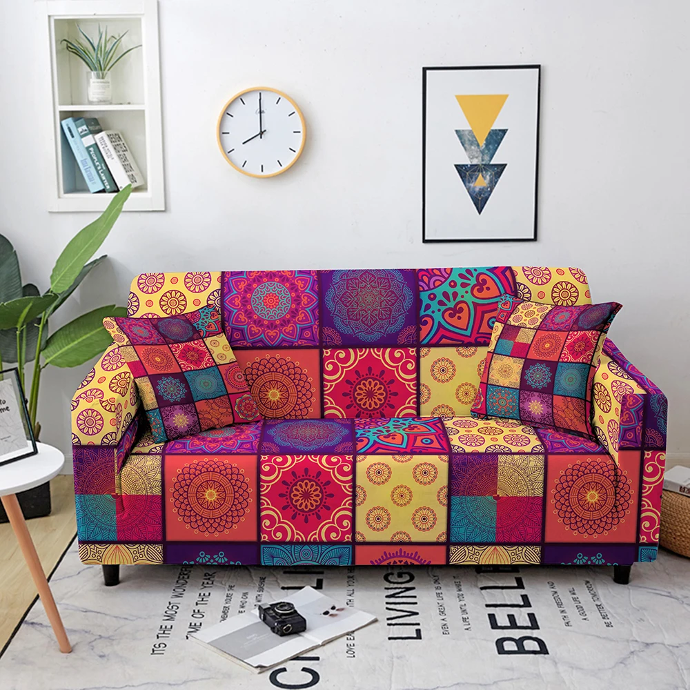 чехол на диван Чехлы для дивана с мандалой для гостиной, секционный угловой чехол для дивана, эластичный чехол для дивана L-образной формы, чехол для дивана, домашний декор чехол на диван угловой чехол на кресло