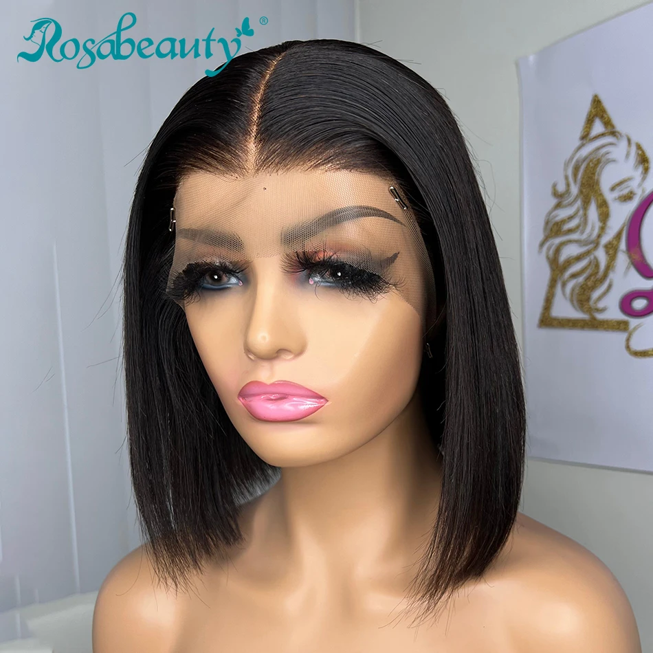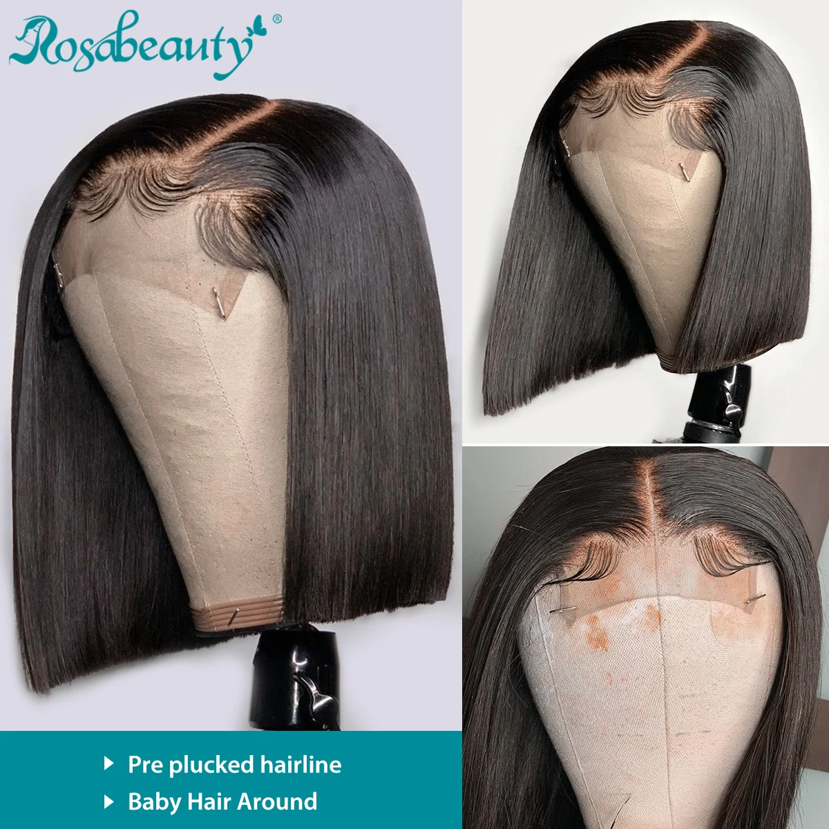 Прямые короткие парики Rosabeauty, парики из натуральных волос с сетчатой основой 4x4, предварительно выщипанные, без повреждений, бразильский фронтальный парик для чернокожих женщин