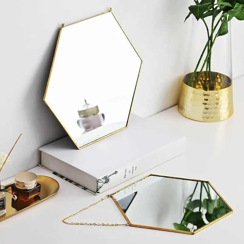 Скандинавский роскошный золотой туалетный столик геометрической формы, туалетное зеркало для ванной, современное минималистичное настенное декоративное зеркало