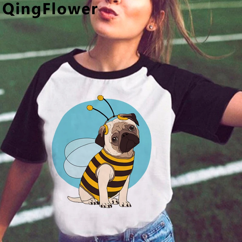 Kawaii Pug женская футболка 2021 одежда для пары гранж уличная одеж...