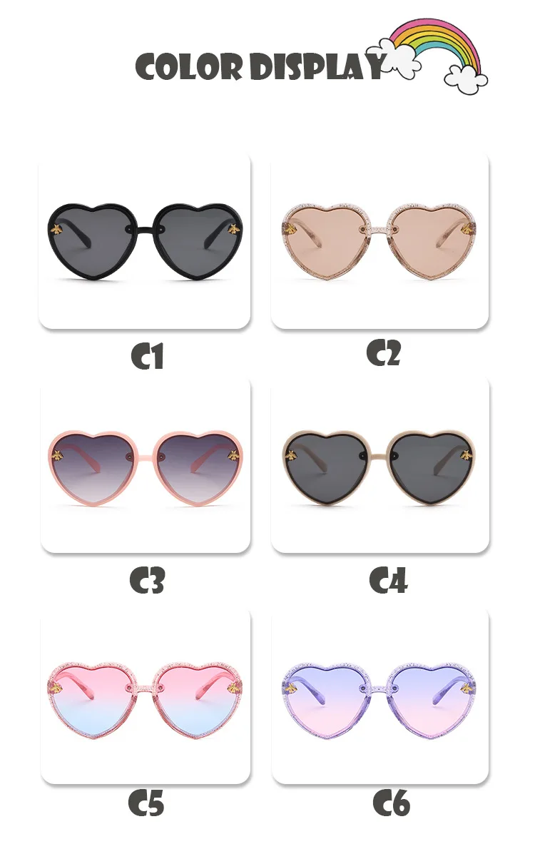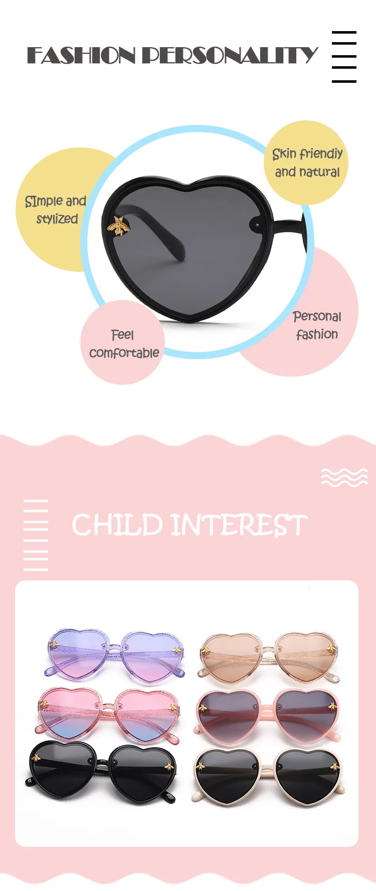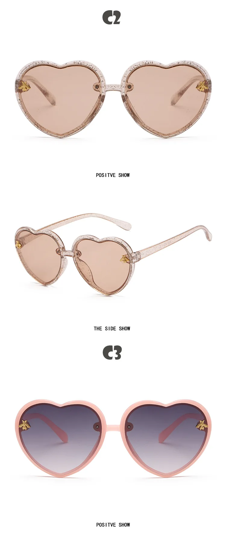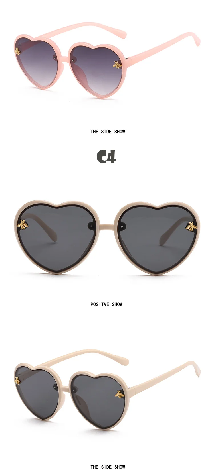 Детские солнцезащитные очки в форме сердца, милые Мультяшные розовые солнцезащитные очки в ретро стиле с Пчелкой, очки в оправе для девочек и мальчиков, модные новые тенденции 2022