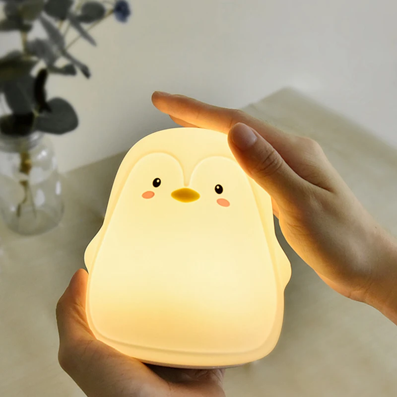 Мультяшный силиконовый ночник в виде животных, милый пингвин, портативный светодиодный ночник с USB-зарядкой для спальни, гостиной, мягкий безвредный светильник