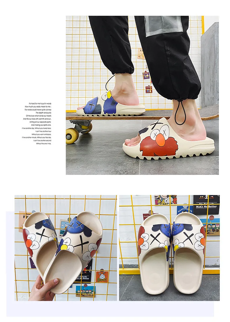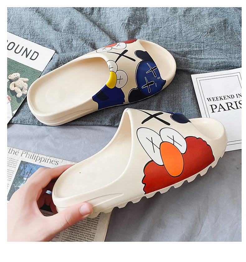 Шлепанцы для мужчин и женщин, дышащие пляжные сандалии, открытый носок, легкие, граффити, летние тапочки, большие размеры 35-46