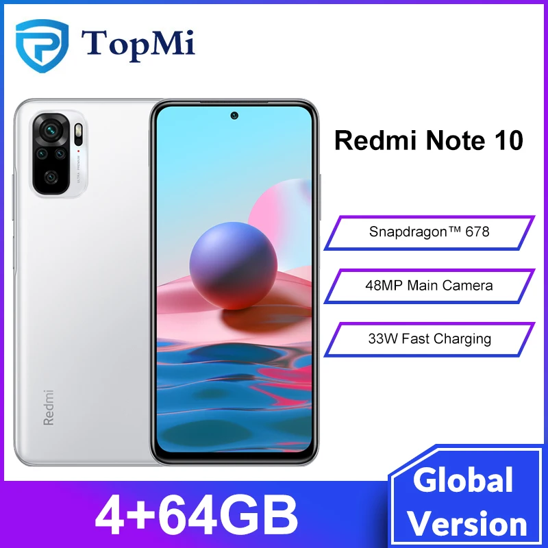 Смартфон Xiaomi Redmi Note 10 глобальная версия, 4 Гб + 64 ГБ, Snapdragon 678, AMOLED экран 6,43 дюйма, 48MP Quad Camera, 5000 мАч