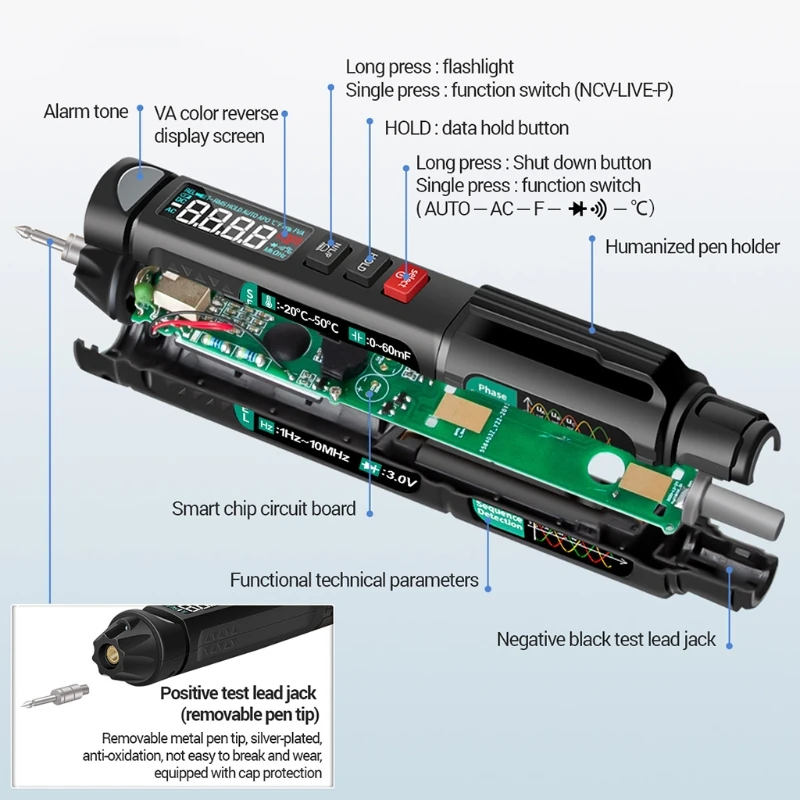 A3008 ACDC Бесконтактный вольтметр 6000 отсчетов True RMS фазы бесконтактная проверка напряжения переменного сопротивления постоянной ёмкости, универсальный конденсатор Температура с фонариком