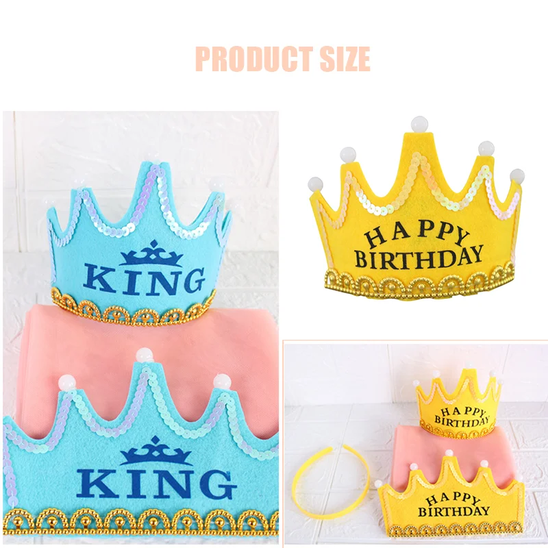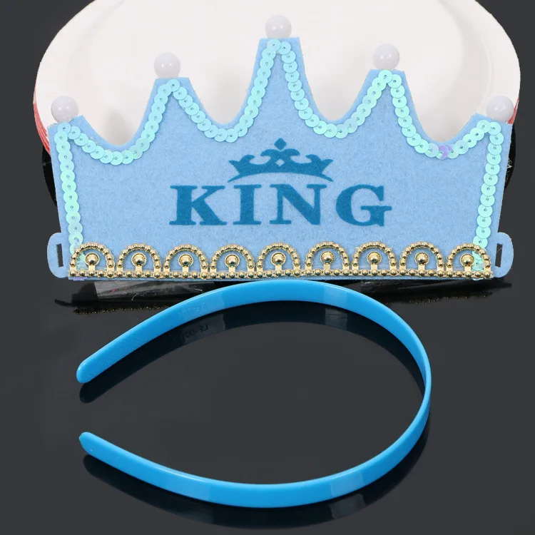 LED счастливый День рождения Королевская корона для принца и принцессы Шапки светящийся повязка на голову душа ребенка мальчик девочки; Дети Рождественские украшения принадлежности