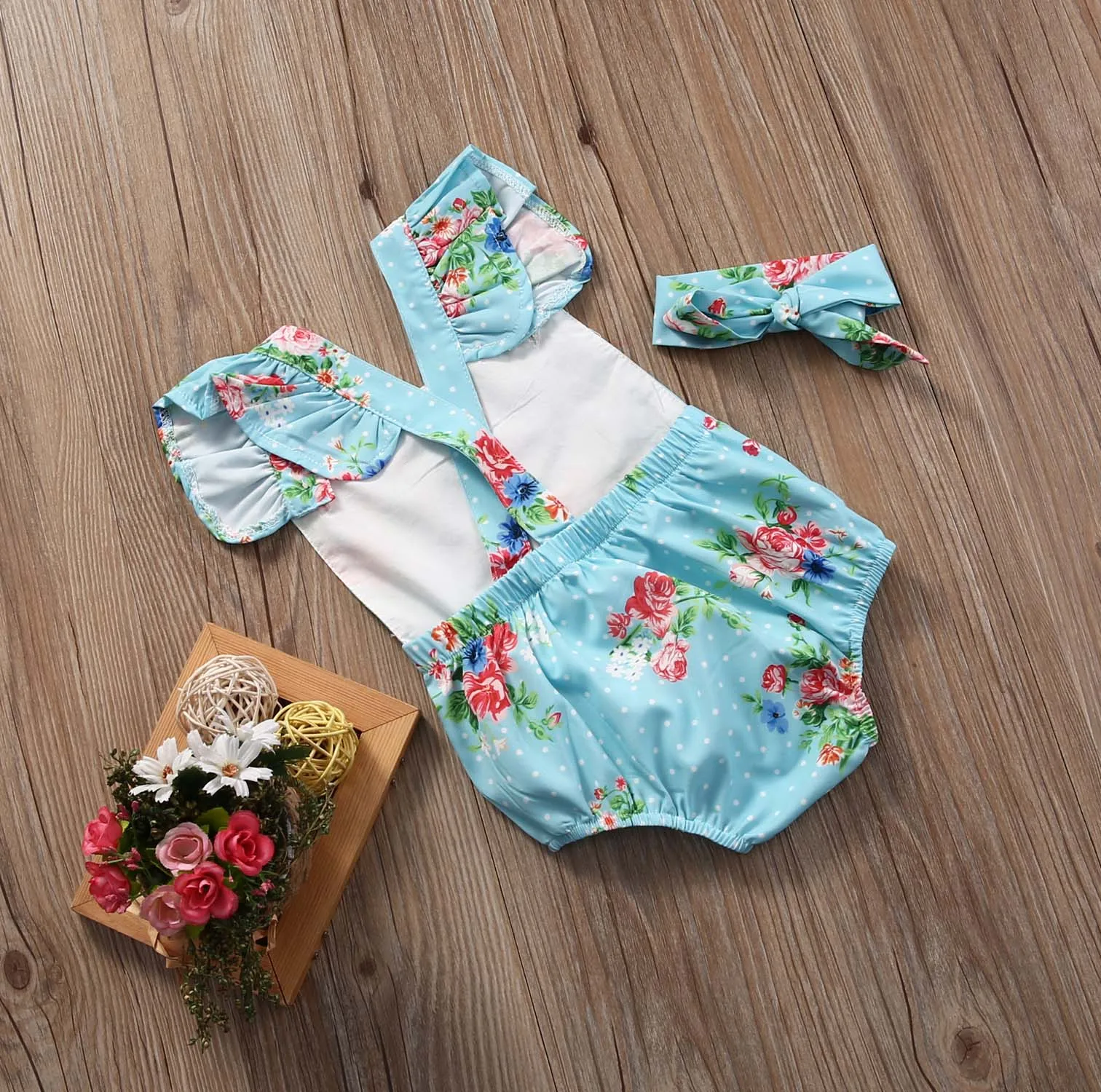 Pudcoco новорожденных для маленьких девочек одежда для детей с рукавами-крылышками; С цветочным принтом; Детский комбинезон с повязкой-бантом, комплект из 2 предметов, летняя одежда для детей в возрасте от 0 до 24 месяцев