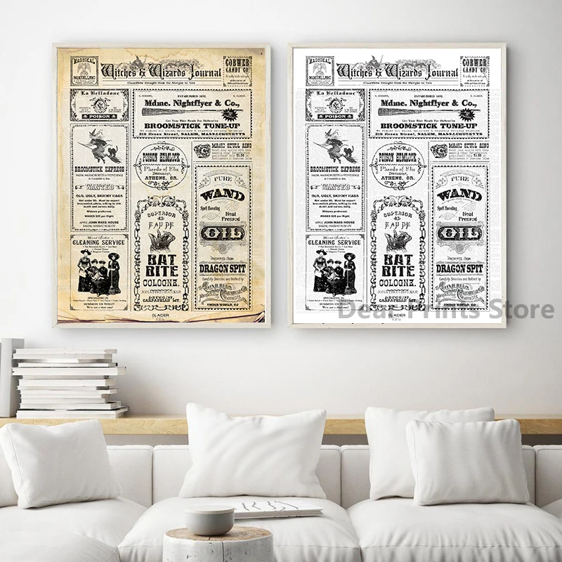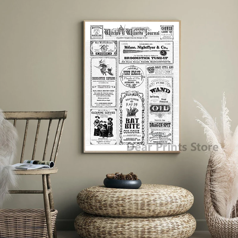 Хэллоуин ведьмы газета объявлений Плакаты и принты Винтаж мастер холст картины настенные картины украшение дома