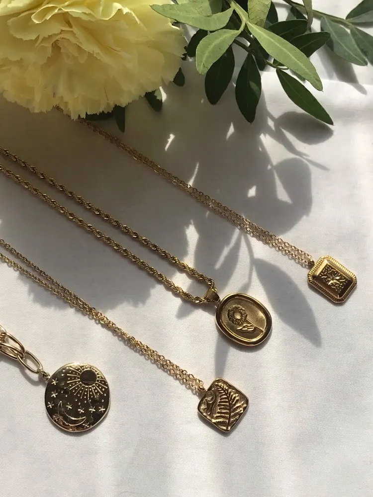 I really love this necklace. I got it mostly for the chain, because I wanted to use it for another pendant that I have but the pendant that it comes with is also cute. It is stainless steel so it doesn’t tarnish and I’ve showered with it and gone to the beach and so far the color is intact. Would buy again!!