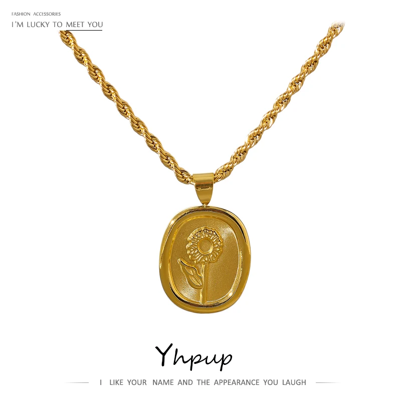 Yhpup стильное овальное ожерелье с подвеской в виде цветка цепочка из нержавеющей стали эффектное ожерелье цепочка на шею женская бижутерия вечерняя Подарочная бижутерия